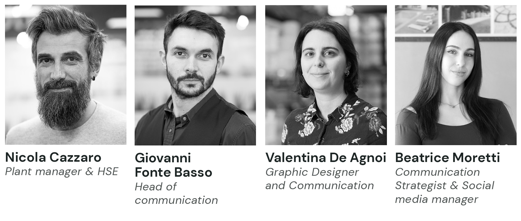 We believe in the teamwork, in a group that is always ready to accept new challenges, with an international mindset and yet an extraordinary capacity to listen and understand the client’s needs. Here’s what connects our company’s workers.