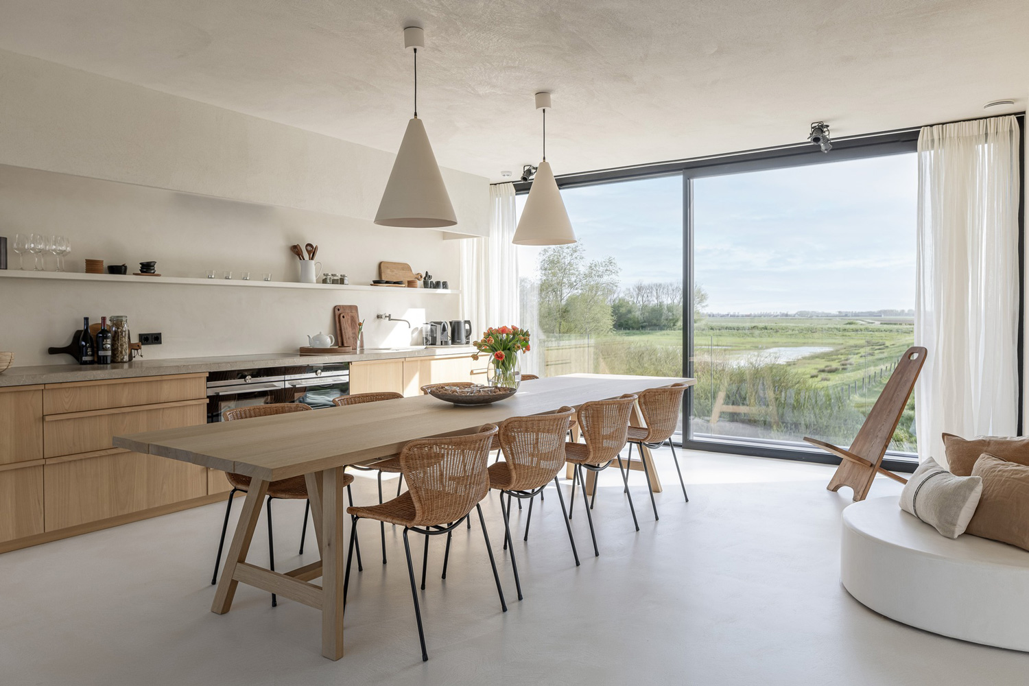 This holiday home doesn’t rely on redundant solutions, but on design coherence and the ability to convey a sense of continuity and calm. The result is a holiday retreat that reflects the soul of the Dutch landscape and the essence of Nordic minimalism at once—a place where design and everyday life meet with warmth and ease.