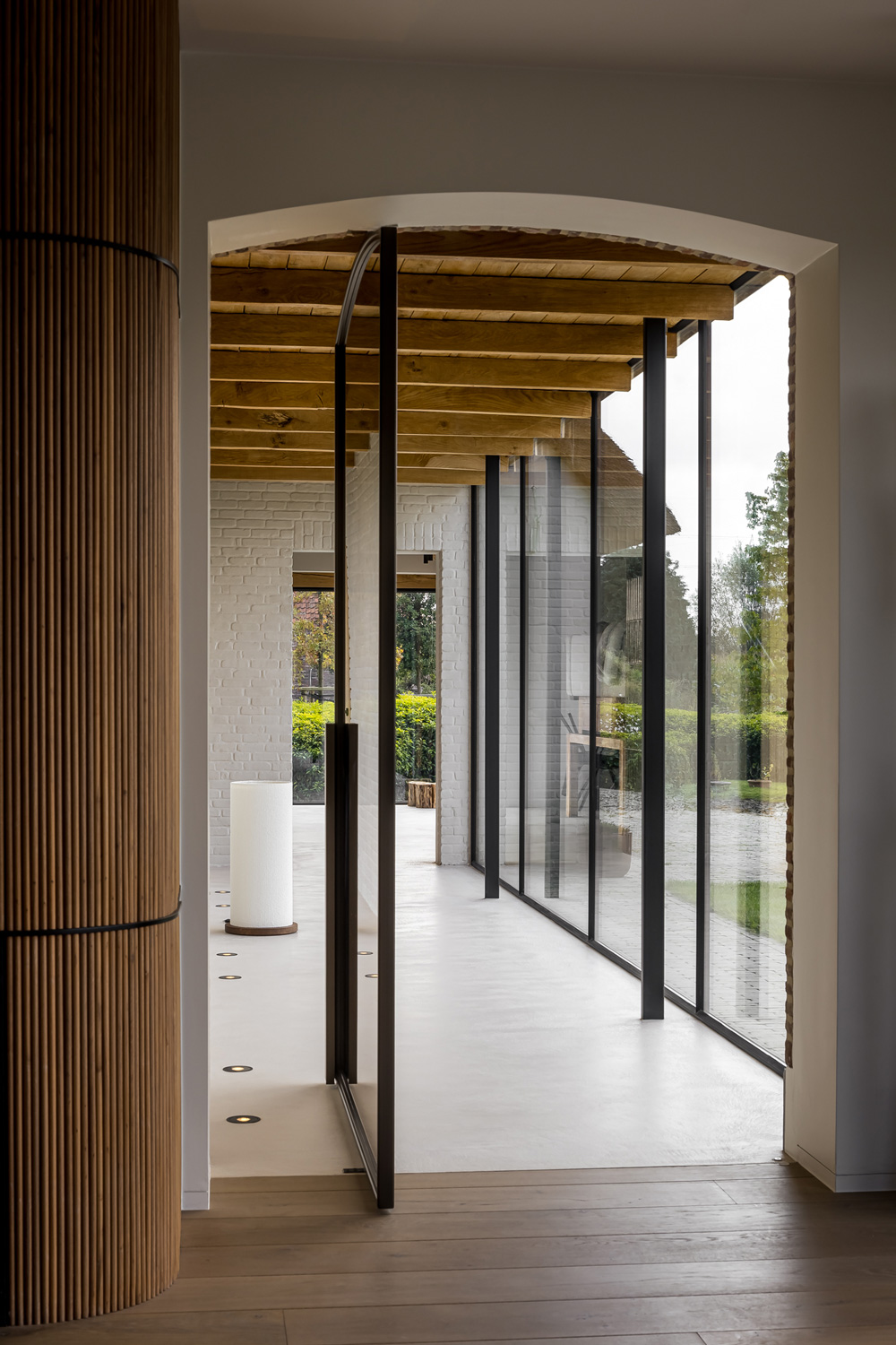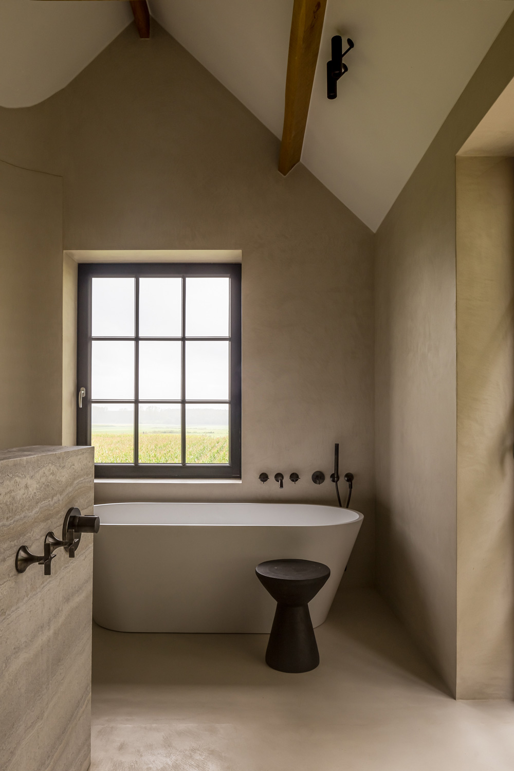 Microtopping® covers the spaces of a villa in Eksaarde, designed by Dennis T’jampens and Vincent De Wever. The neutrality of Ideal Work’s microcement solution blends with other materials to create a home defined by visual continuity and fluid transitions between elements.